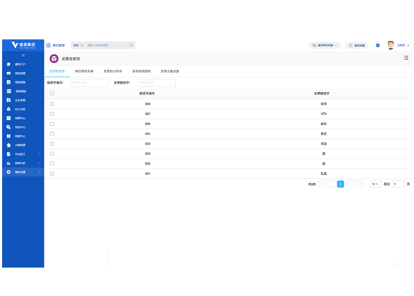 - 通过发票验真、查重、连号校对、敏感词校验、黑白名单自定义设置等功能,灵活满足企业内控合规要求。