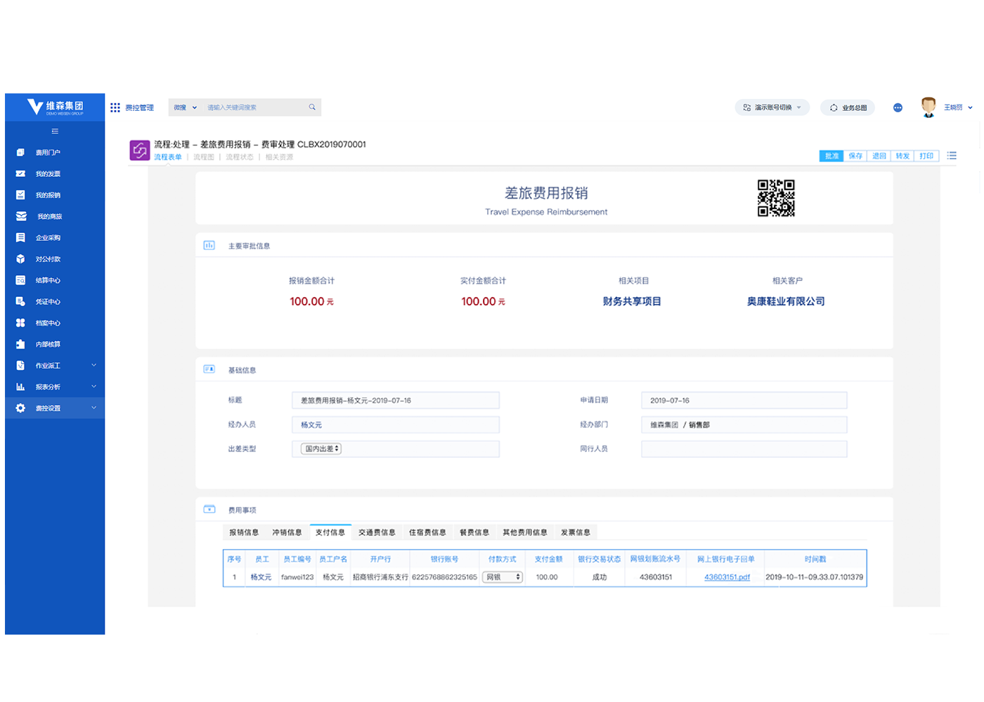 - PC移动一体化报销体验,支持在移动端通过语音一键发起报销,领导随时随地进行审批,页面符合移动端操作习惯和展现方式,并可通过语音一键发起报销,极大提升报销体验。
