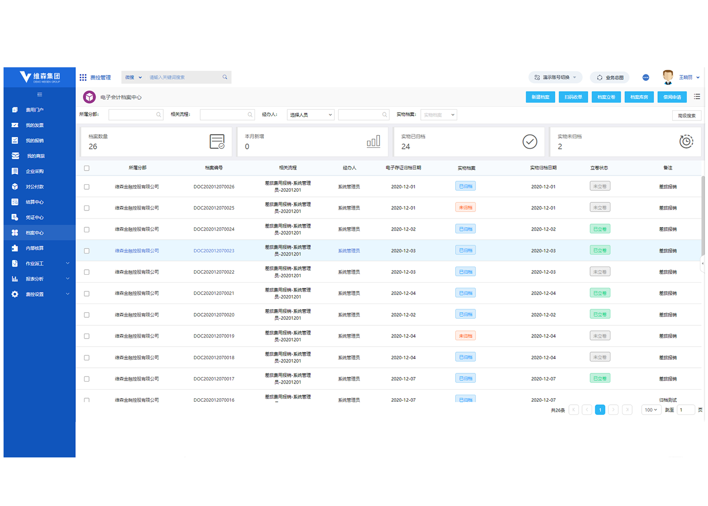 - 财务会计档案不仅可以管理自身系统中的会计数据档案,还可以管理来自于财务系统、费控系统、其他异构系统中的财务电子票据文件,统一归档于档案系统,形成防篡改的记账凭证。